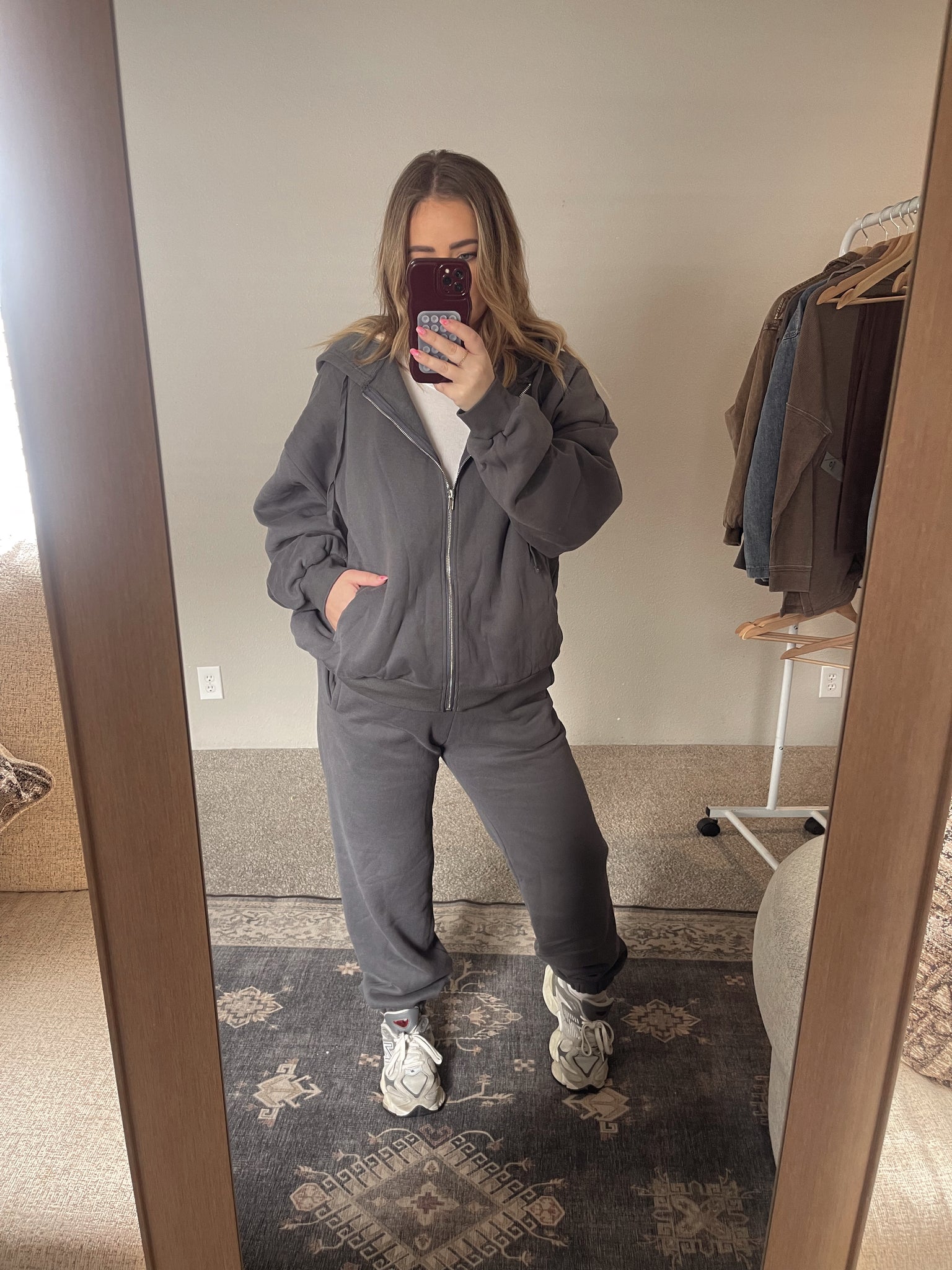 high waist sweatpants with elastic band, deep pockets, elastic cinch ankle length