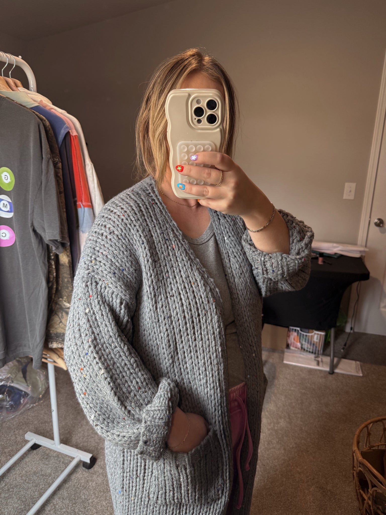 SUBTLE SEQUIN CHUNKY KNIT CARDIGAN IN GREY 🩶✨