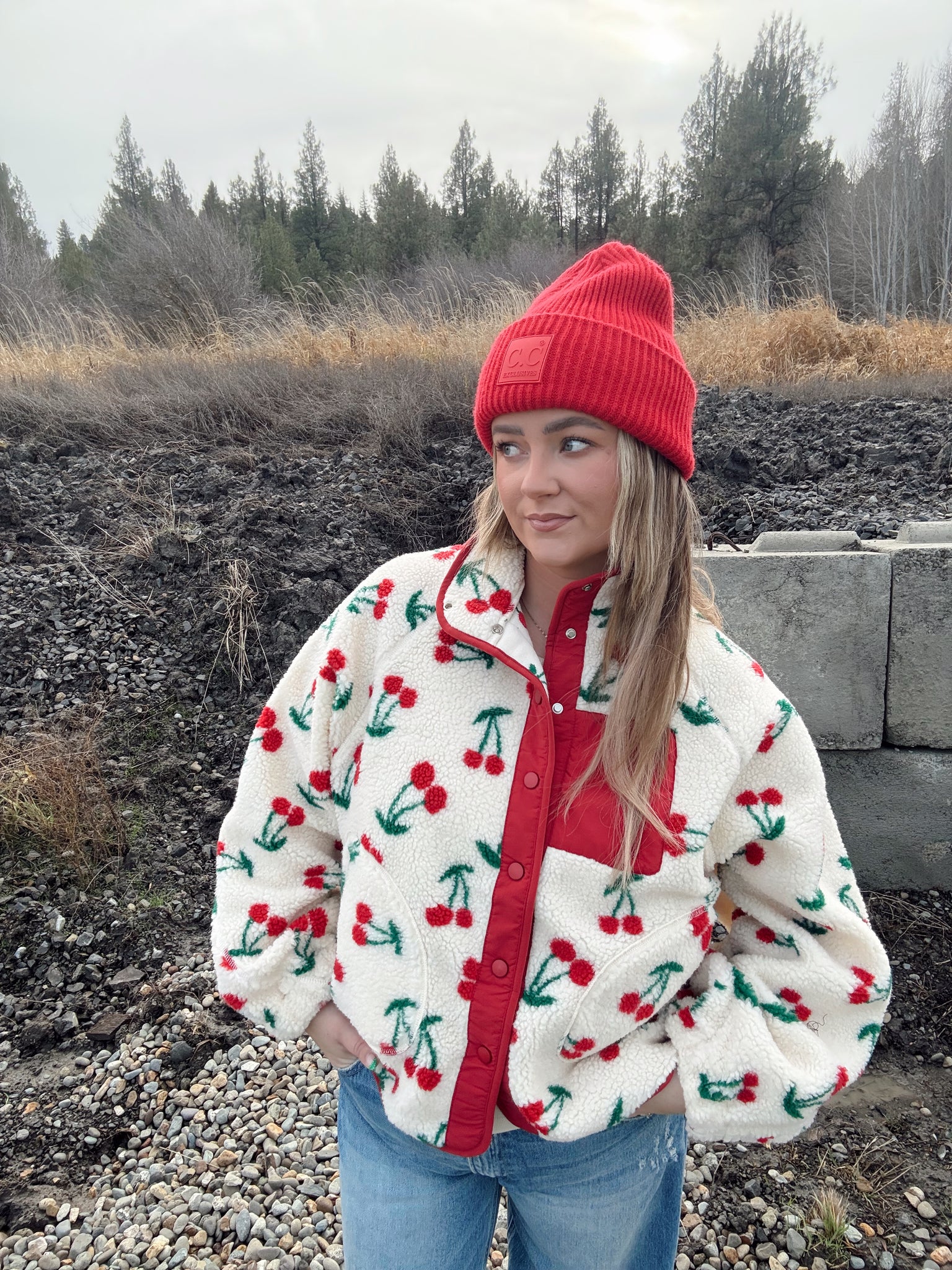 CC CUFFED RIB BEANIE IN CHERRY RED